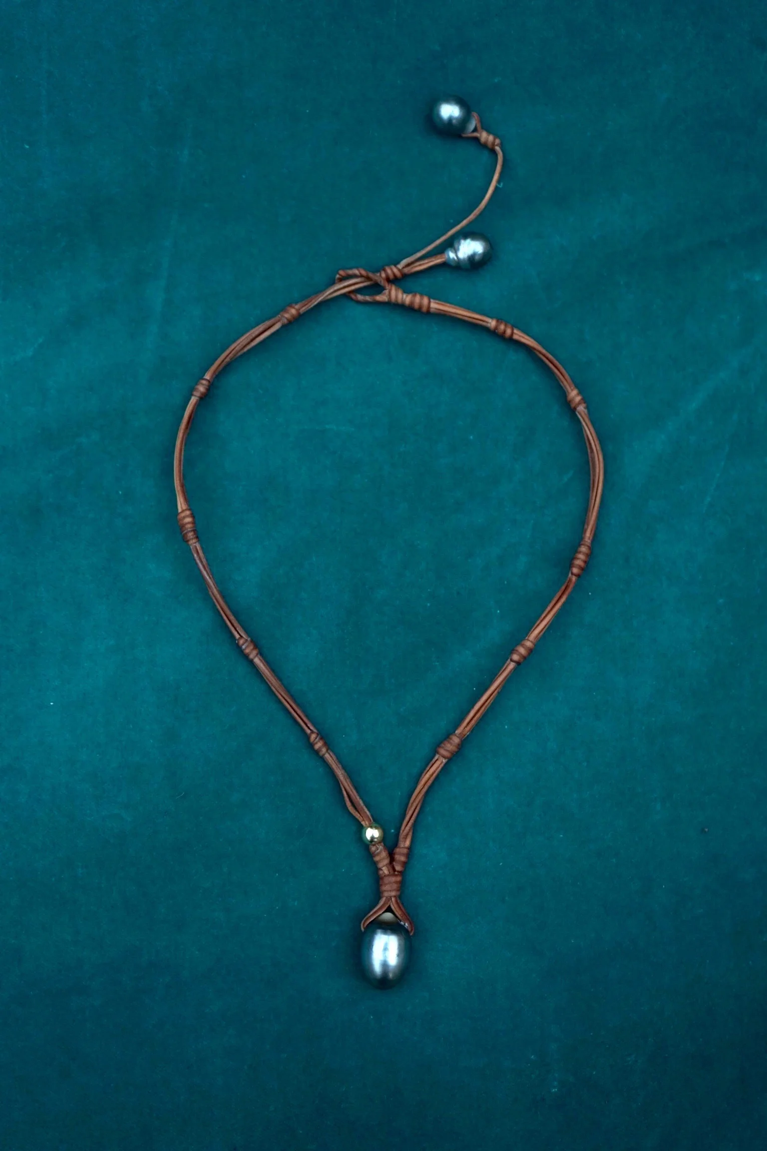 TAHITIAN PEARLS - SILVER DETAIL - SIMPLE LEATHER