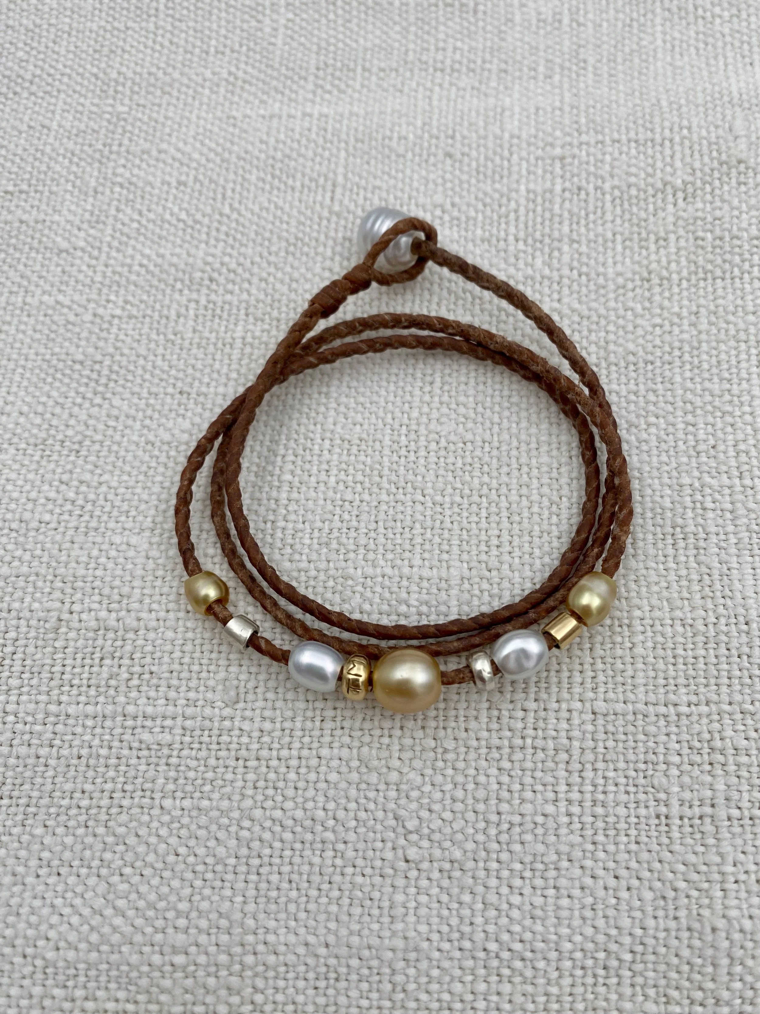 Three times around the wrist, slide the pearls to where ever you wish, subtle but sparkling.