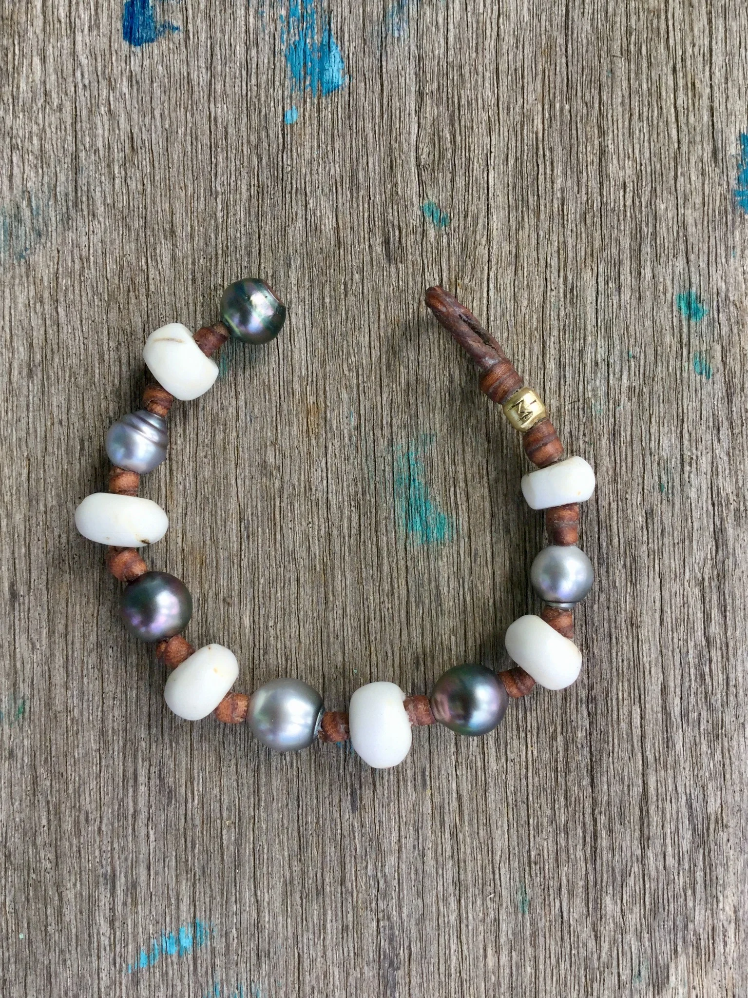 TAHITIAN PEARLS - MOZAMBICAN CONCH BEADS - GOLD DETAIL