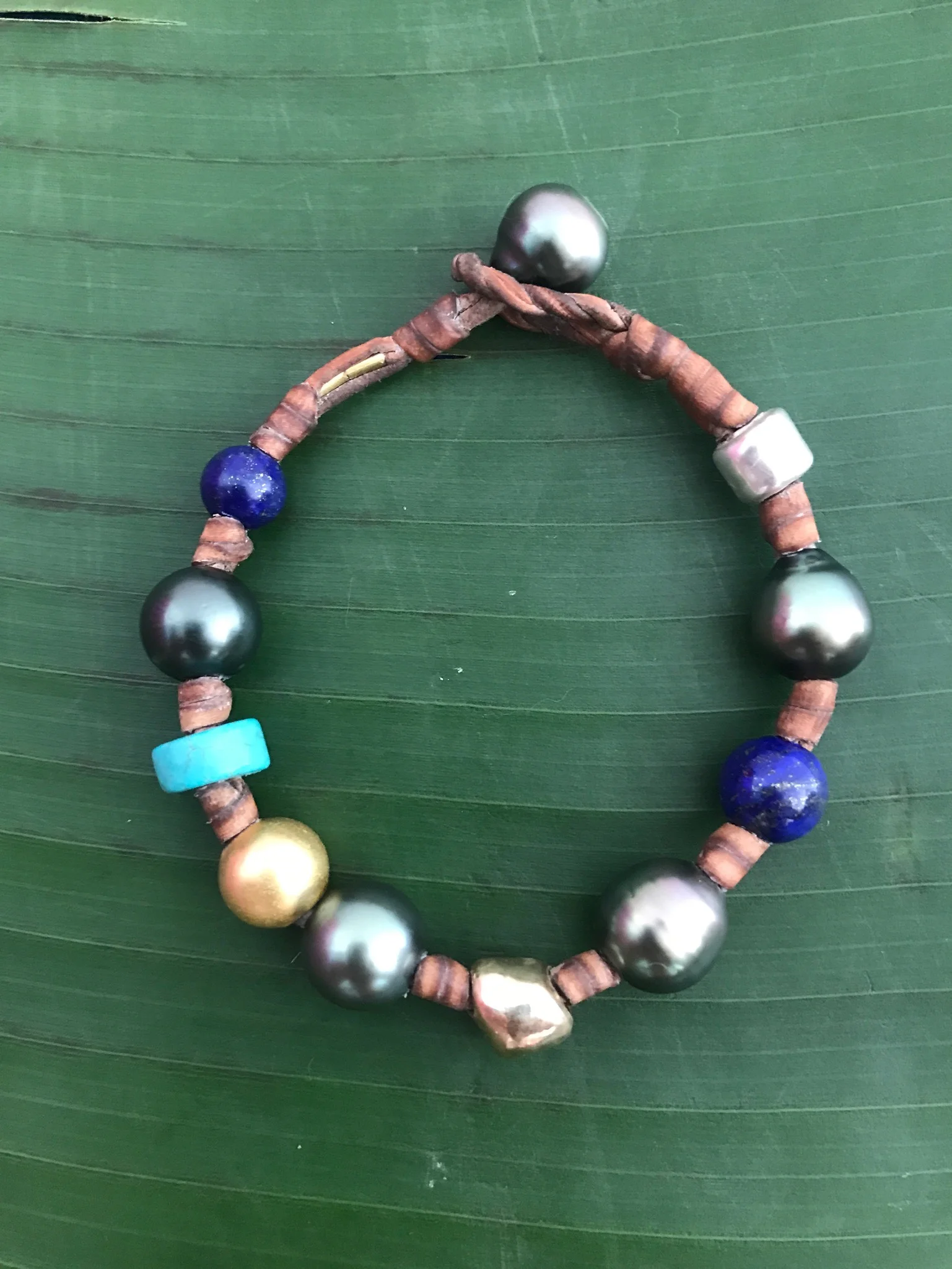TAHITIAN PEARLS - LAPIS LAZULI - TURQUOISE - GOLD BEADS - SILVER BEAD - GOLD DETAIL